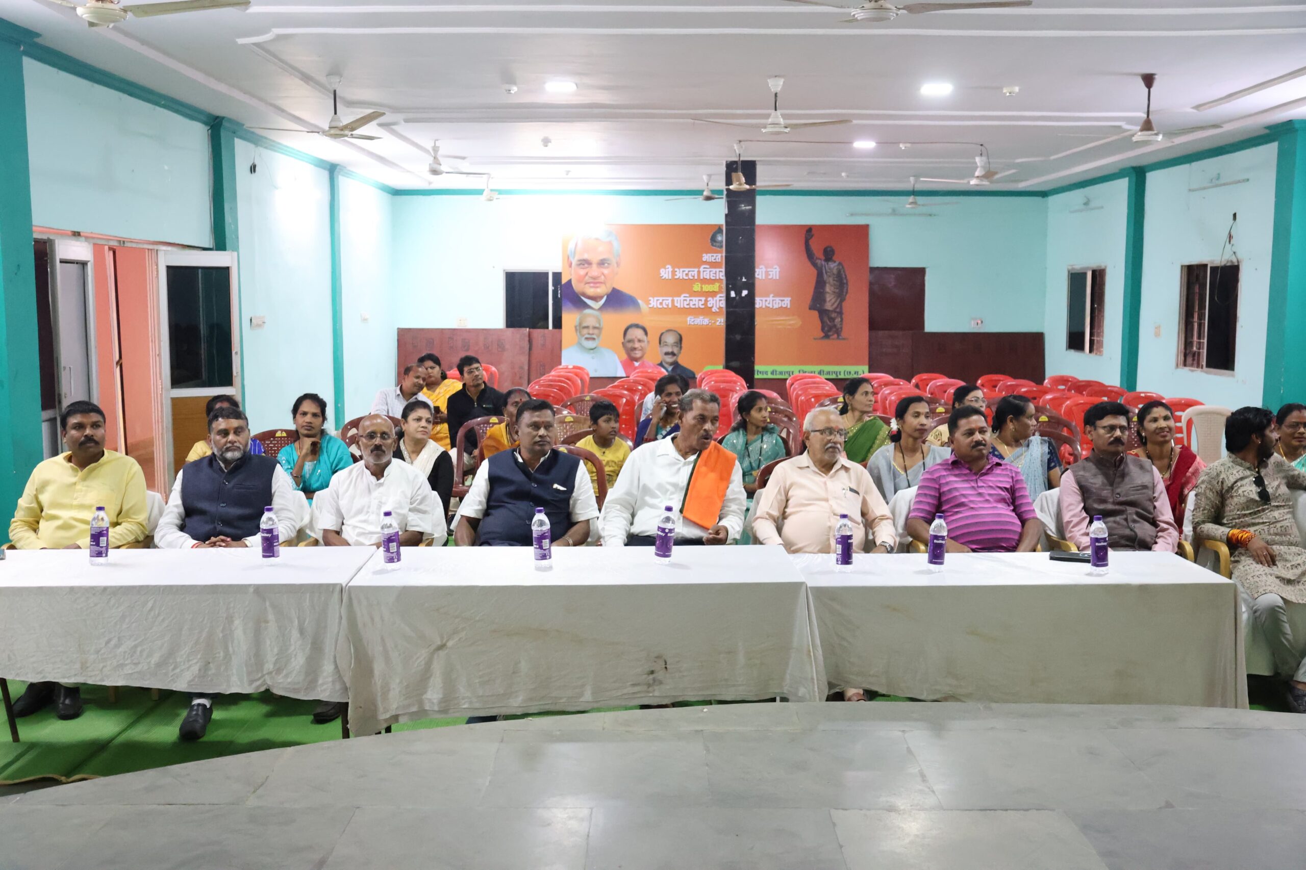 बीजापुर 25 दिसम्बर 2024- भारत के पूर्व प्रधानमंत्री भारत रत्न श्रद्धेय श्री अटल बिहारी वाजपेयी के स्वर्ण जयंती के अवसर पर अटल परिसर भूमिपूजन कार्यक्रम बीजापुर के सांस्कृतिक भवन में आयोजित हुआ कार्यक्रम में प्रदेश के मुख्यमंत्री श्री विष्णुदेव साय का वर्चुअल प्रसारण हुआ। पूर्व प्रधानमंत्री श्रद्धेय श्री अटल बिहारी वाजपेयी के जयंती के अवसर पर सुशासन दिवस के रूप में मनाया गया। इस अवसर पर जिले के विभिन्न स्थानों पर स्थित अटल चौक पर साफ-सफाई, रंग, रोगन एवं पूजा अर्चना की गई।