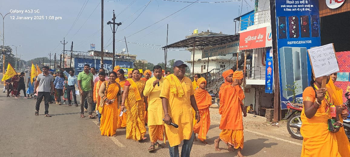 बीजापुर,,,,,,,,,,,, अखिल विश्व गायत्री परिवार शांतिकुंज हरिद्वार के मार्गदर्शन तथा गायत्री शक्तिपीठ बीजापुर के तत्वाधान में युवाओं के आदर्श स्वामी विवेकानंद जी की जयंती के अवसर पर गायत्री परिजनों ने विविध कार्यक्रम सफलतापूर्वक संपन्न कराया। प्रातः 8:00 बजे से सार्वजनिक स्थलों पर स्वच्छता अभियान चला कर परिजनों ने अपने आसपास के वातावरण तथा परिसर को स्वच्छ बनाने का संदेश दिया। जिसके तारतम्य में गायत्री शक्तिपीठ,शिव मंदिर,स्वामी आत्मानंद अंग्रेजी मीडियम स्कूल के आसपास के परिसर में फैले कूड़े कचरा को साफ कर स्वच्छता का संदेश दिया। स्वच्छता कार्यक्रम पश्चात बाल संस्कारशाला की कक्षा में उपस्थित नन्हे मुन्ने बच्चों एवं विभिन्न संस्थाओं से आए हुए स्कूली छात्र-छात्राओं को स्वामी विवेकानंद जी के जीवन परिचय को बताया गया युवाओं को आदर्श मार्ग पर चलने की प्रेरणा संबंधी उद्बोधन आचार्य देव साहू द्वारा दिया गया । संगीत प्रवचन पश्चात नशा मुक्ति रैली के माध्यम से गायत्री शक्तिपीठ से नया बस स्टैंड बीजापुर तक समाज कल्याण विभाग के समर्थ संस्था के स्कूली बच्चों एवं शिक्षक शिक्षिकाएं,कन्या शिक्षा परिसर के भारत स्क्वाड एवं गाइड की छात्राएं, स्पोर्ट अकादमी,सरस्वती शिशु मंदिर के छात्र-छात्राएं एवं बाल संस्कारशाला के नन्हे मुन्ने बच्चे व गायत्री परिवार के परिजनों ने मिलकर नशा मुक्ति नारे लगाते हुए एवं गीत संगीत के माध्यम से नगर में रैली निकालकर युवाओं को जागृत करने तथा नशा से बचाने का प्रेरक पहल किया गया । रैली के दौरान बच्चों को पानी की व्यवस्था युवा व्यवसायी राजेश साहू के द्वारा किया गया एवं चॉकलेट की व्यवस्था अवधेश साहू ने किया । नया बस स्टैंड से होकर पामभोई पेट्रोल पंप से होते हुए गायत्री शक्तिपीठ में रैली का समापन हुआ। रैली हेतु वाहन व्यवस्था प्रवीण रेड्डी तथा समापन पश्चात आए हुए समस्त बच्चों को मनोज नाग व मुन्ना साहू, पप्पू साहू के सहयोग से गायत्री परिवार के प्रांगण में भोजन प्रसाद दिया गया । बच्चों की उत्सुकता पूरे कार्यक्रम के दौरान देखते ही बन रही थी नगर में एक अलग ही माहौल स्वामी विवेकानंद जी की जयंती देखने को मिला। सरस्वती शिशु मंदिर के आचार्य संतोष गोरला के नेतृत्व में कई बच्चों ने विवेकानंद की वेशभूषा में कार्यक्रम में सम्मिलित होकर आयोजन को भव्य बनाया। *स्वामी विवेकानन्द बने बच्चे पूरे कार्यक्रम में आकर्षण के केन्द्र बने।* कार्यक्रम का प्रचार प्रसार सोशल मीडिया के माध्यम से दो दिन पहले से ही किया गया था जिसे सफलता पूर्वक आयोजित कर अमली जामा पहनाने में गायत्री परिवार सफल रहा। परिजनों की गोष्ठी भोजन के बाद हुई जिसमें भावी कार्ययोजना पर चर्चा किया गया। मां दंतेश्