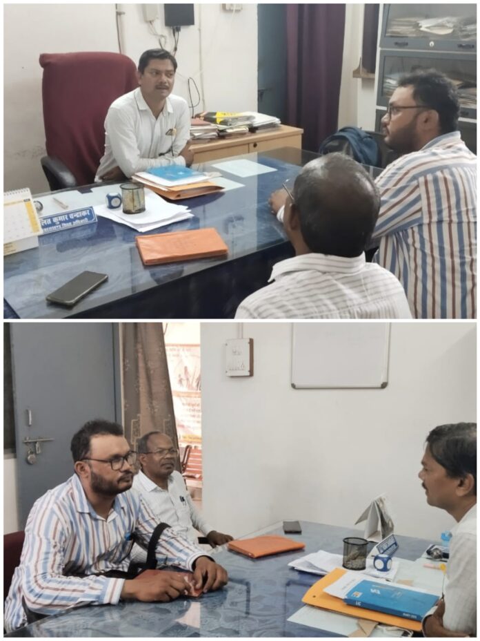 वे श्री जगदीश तारम जी के साथ विकासखंड शिक्षा अधिकारी से भी मिले जहां पर विकासखंड स्तरीय प्रवेश उत्सव आयोजन , जी पी एफ पासबुक संधारण,युक्तियुक्तकरण, मासिक बैठकों के स्वरूप पर चर्चा की गई