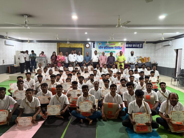 कार्यक्रम के समापन अवसर पर सभी 120 प्रशिक्षणार्थियों को प्रमाणपत्र एवं योग किट प्रदान कर सम्मानित किया गया।