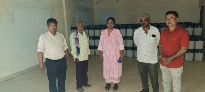 मोहला:– भारत निर्वाचन आयोग नई दिल्ली के निर्देशानुसार कलेक्टर तुलिका प्रजापति ने राजनैतिक दल के प्रतिनिधियों की उपस्थिति में आज माडिंग पीड़िंग स्थित वेयर हाउस का त्रैमासिक निरीक्षण कि राजनैतिक दल के प्रतिनिधियों के समक्ष स्ट्रांग रूम का लॉक खुलवाया गया। साथ ही मोहला-मानपुर विधानसभा क्रमांक 78 के ईव्हीएम एवं वीवीपैट का अवलोकन किया गया। इस दौरान स्ट्रांग रूम की साफ-सफाई के साथ विद्युत व्यवस्था बेहतर की गई। इस अवसर पर भारतीय जनता पार्टी से अमित श्रीवास्तव, इण्डियन नेशनल कांग्रेस पार्टी से सुरजीत सिंह ठाकुर, बहुजन समाज पार्टी से छबिलाल माहेश्वरी अपर कलेक्टर श्री जीआर मरकाम सहित निर्वाचन से संबंधित अधिकारी-कर्मचारी उपस्थित रहें।