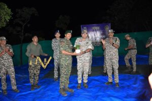 दिनांक 20–21 नवंबर 2025 को पुलिस महानिदेशक CRPF, अति0 पुलिस महानिदेशक केरिपु, अति0 पुलिस महानिदेशक ऑप्स केरिपु, अति0 पुलिस महानिदेशक नक्सल अभियान, छ0ग0, IG छ0ग0 सेक्टर केरिपु, DIG CRPF सेक्टर बीजापुर एवं पुलिस अधीक्षक बीजापुर द्वारा ताड़पाला कैंप का दौरा कर जवानों से चर्चा एवं उत्साहवर्धन किये और विषम परिस्थितियों में किए गए उत्कृष्ट कार्य हेतु जवानों को बधाई दी गई । दिनांक 20/11/2025 की रात्रि पुलिस महानिदेशक केरिपु एवं अन्य सभी वरिष्ठ अधिकारियों ने ताड़पाला कैम्प में जवानों के साथ रात्रि विश्राम कर न केवल उनका मनोबल बढ़ाया, बल्कि अपने स्नेह, विश्वास और अटूट समर्थन का सशक्त संदेश भी दिया।