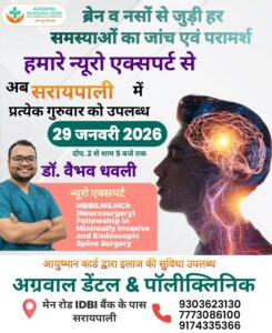 Uncategorized अग्रवाल नर्सिंग होम के चेस्ट फिजिशियन डाक्टर श्री रजनी और प्रसिद्ध न्यूरो सर्जन डाक्टर वैभव धवली अब प्रत्येक गुरुवार सरायपाली मे है उपलब्ध.. By Rahul Bhoi - 01/29/2026 0 26 FacebookXPinterestWhatsApp समय दोपहर -2 से 5 बजे तक स्थान -मेन रोड IDBI के बैंक के पास -सरायपाली फोन -930362-3130…77730-86100 91743-35366