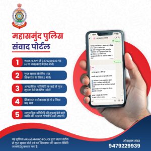 पुलिस और जनता के बीच संवाद को सरल और प्रभावी बनाने की दिशा में कांकेर पुलिस के प्रभावी पहल को अक्षरशः महासमुंद जिले में भी लागू किया जा रहा है | आज दिनांक 18 मार्च से जनता महासमुंद जिला पुलिस को व्हाट्सप्प के जरिये अपनी कोई भी शिकायत या किसी आपराधिक गतिविधि के बारे सूचना भेज सकते है|