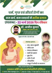 अगर आपको कम खर्च और कम दवाइयों मे बाहरी शारीरिक समस्याओ का ईलाज कराना है तो आने वाले 22 मार्च दिन रविवार को अग्रवाल नर्सिंग होम बसना मे बाहरी शारीरिक त्वचा से जुड़े सभी तरह के रोग जैसे दाद, खाज, खुजली,सफ़ेद खुजली. फंगल इन्फेक्शन,बालो का झड़ना, कुष्ट रोग,शरीर मे दाने, सोराइसिस,नाख़ून मे सफेदी या कालापन जैसे रोगों के लिए..डॉक्टर अजित कुमार mbbs MD (skin&VD) रहेंगे उपलब्ध..।