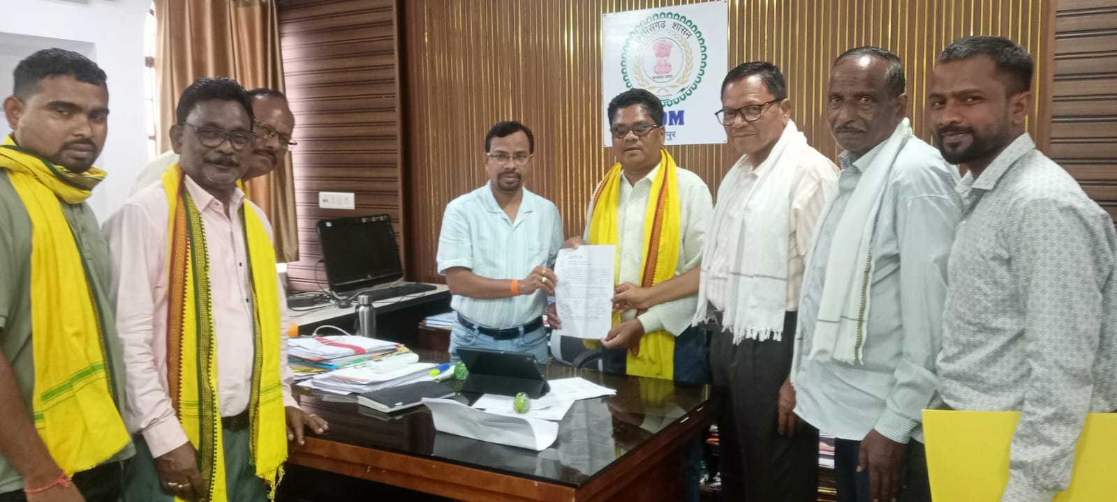 उक्त ज्ञापन सौंपने के दौरान जिलाध्यक्ष अशोक कुमार तलांडी ,प्रदेश उपाध्यक्ष नरेंद्र बुरका, संरक्षक बी एस नागेश, वरिष्ठ उपाध्यक्ष गुज्जा राम पवार, अनिल बुरका, युवा अध्यक्ष शेखर अंगमपल्ली ,समाज प्रमुख दीपक मरकाम व यालम जी शामिल थे समाज प्रमुखों ने शासन प्रशासन को स्पष्ट चेतावनी दिया कि समाज ने जगह जगह जन चौपाल लगाकर लोगों की आपबीती सुनी लोगों के साथ विचार विमर्श कर जन हित मूल भूत आवश्यकताएं पूरी करने शासन प्रशासन को ज्ञापन सौंपकर न्याय की गुहार लगाई।
