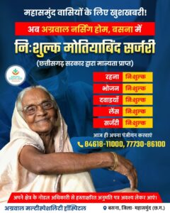 रहना, दवाई, लेंस,भोजन, सर्जरी. सब कुछ बिल्कुल निशुल्क उपलब्ध है छत्तीसगढ़ सरकार से मान्यता प्राप्त इस अस्पताल मे..