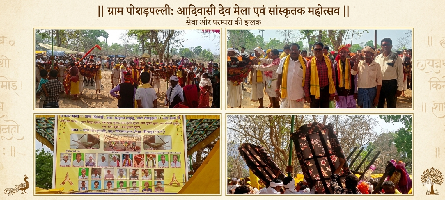 बीजापुर जिले के भोपाल पटनम विकास खण्ड अंतर्गत ग्राम पोषण पल्ली में पल्ली में भव्य तीन दिवसीय अटमपडगू पोरसूंगा पोकमुरिया एडेमर्री पेन करषाड देव मेला आयोजित किया गया जिसमें जिले भर से रूढ़ि जन्य परंपरागत आदिवासी समस्त देवी देवताओं आगमन हुआ जिसमें