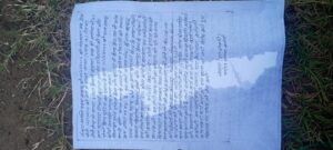 बीजापुर,भोपालपटनम::::: बीती रात माओवादियों के द्वारा नेशनल हाईवे जगदलपुर टू निजामाबाद रोड गोरला नाला के आस पास रोड किनारे पर्चे फेंके गए ।